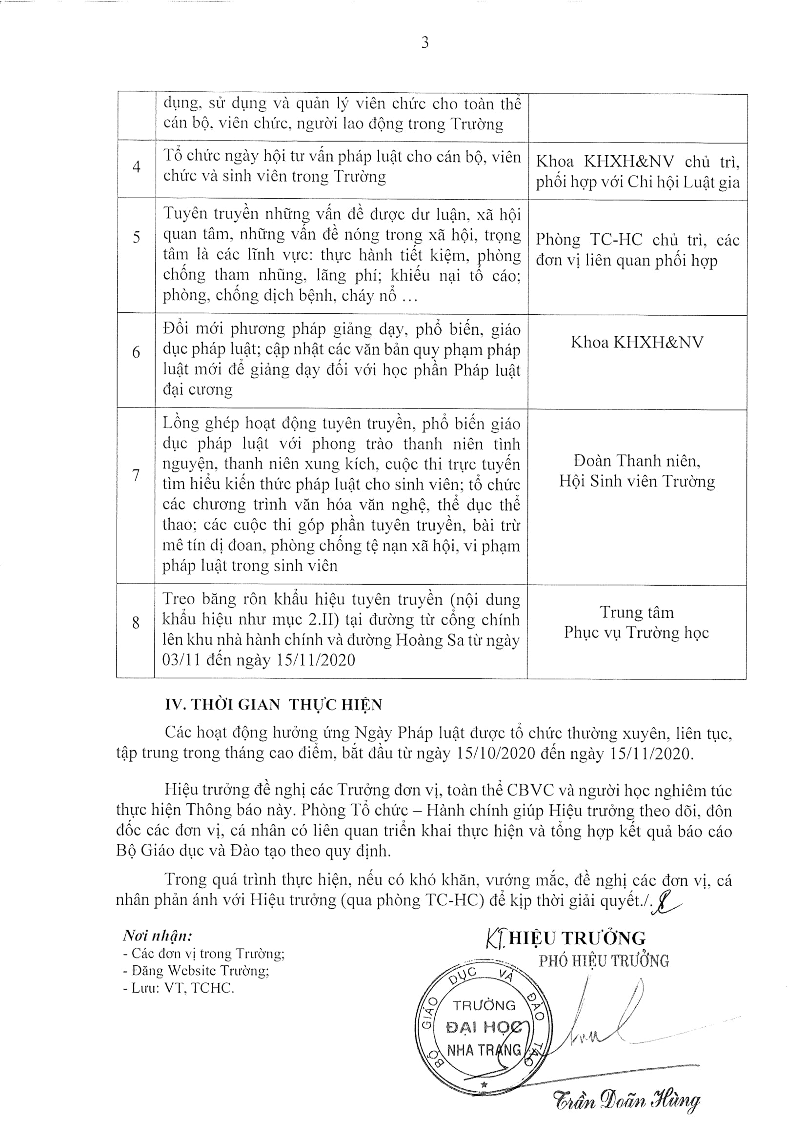 Thông báo hưởng ứng Ngày Pháp luật năm 2020