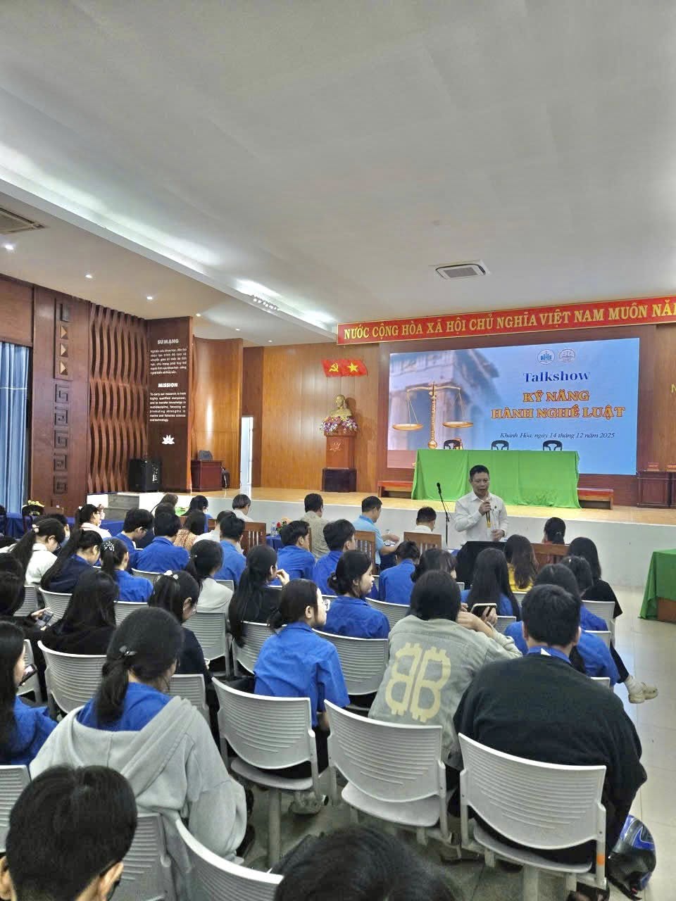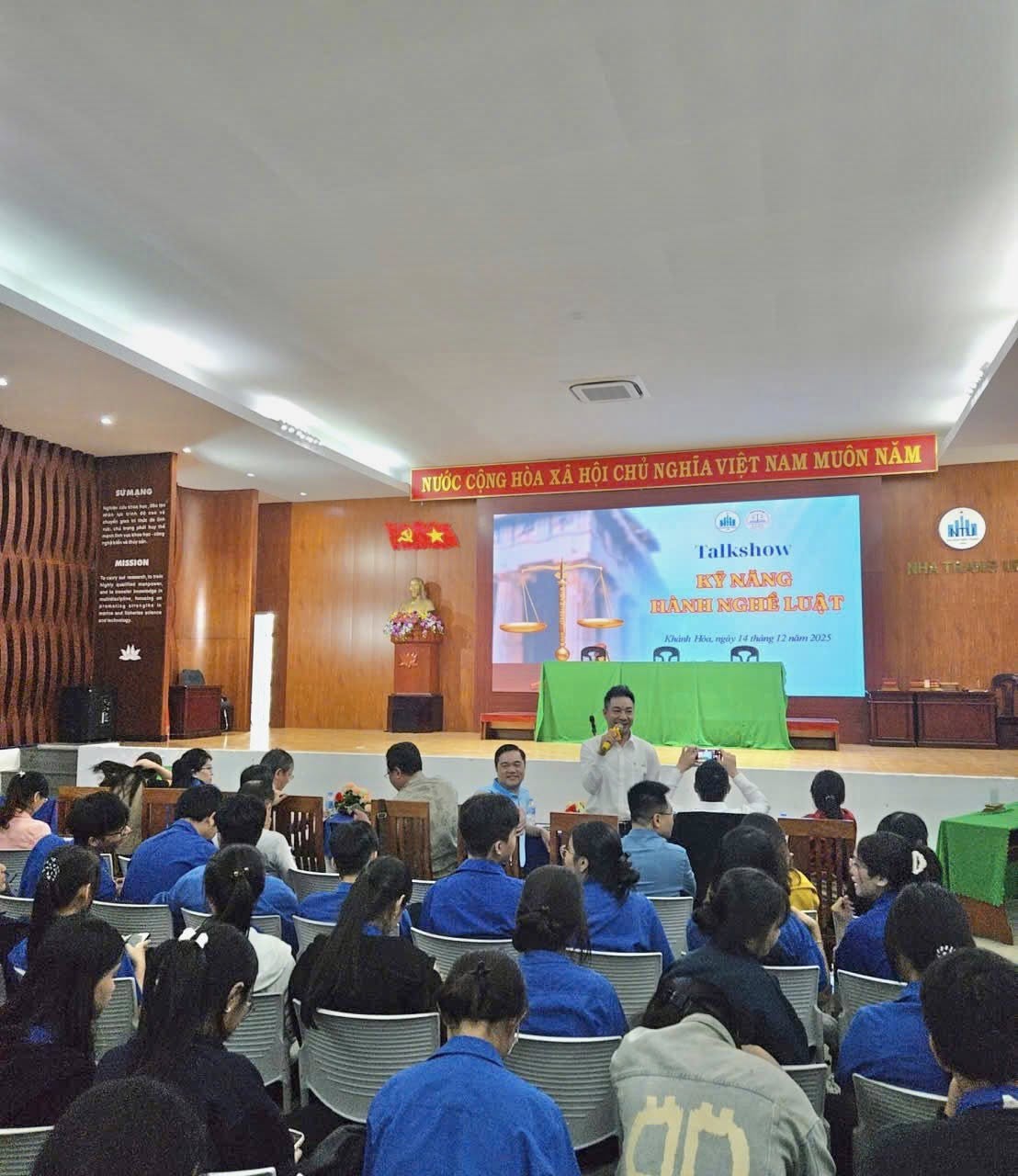 Ngay sau phần diễn án, chương trình tiếp tục với Talkshow "Kỹ năng hành nghề luật". Tại đây, các khách mời giàu kinh nghiệm đã trực tiếp chia sẻ những góc nhìn thực tiễn, kỹ năng nghề nghiệp cần thiết cũng như định hướng con đường theo đuổi ngành luật trong tương lai.