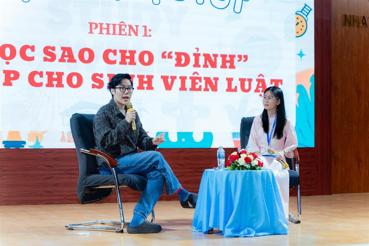 Tại Hội nghị, diễn giả Nguyễn Hoàng Huy đã mang đến những chia sẻ thực tế từ bí quyết học tập hiệu quả dành riêng cho sinh viên ngành Luật đến việc trau dồi ngoại ngữ như một công cụ thiết yếu để mở rộng cánh cửa hội nhập quốc tế. Bên cạnh những chia sẻ quý giá từ anh, các bạn sinh viên đã tích cực tham gia đặt câu hỏi và tương tác vô cùng sôi nổi.