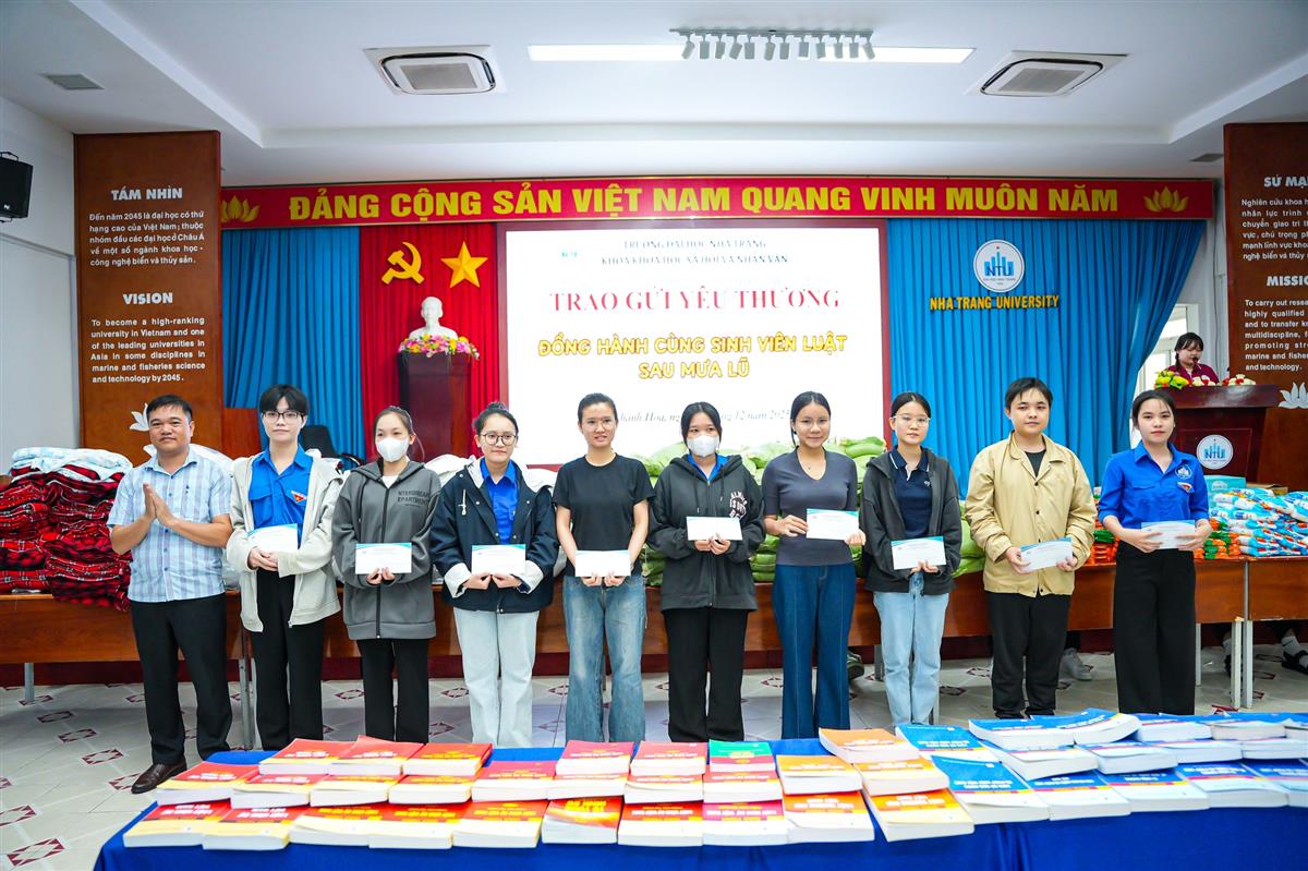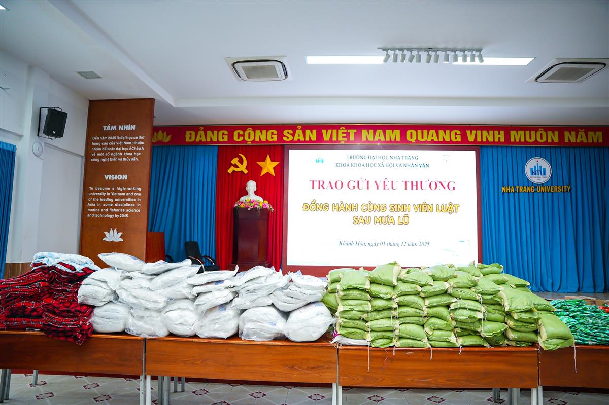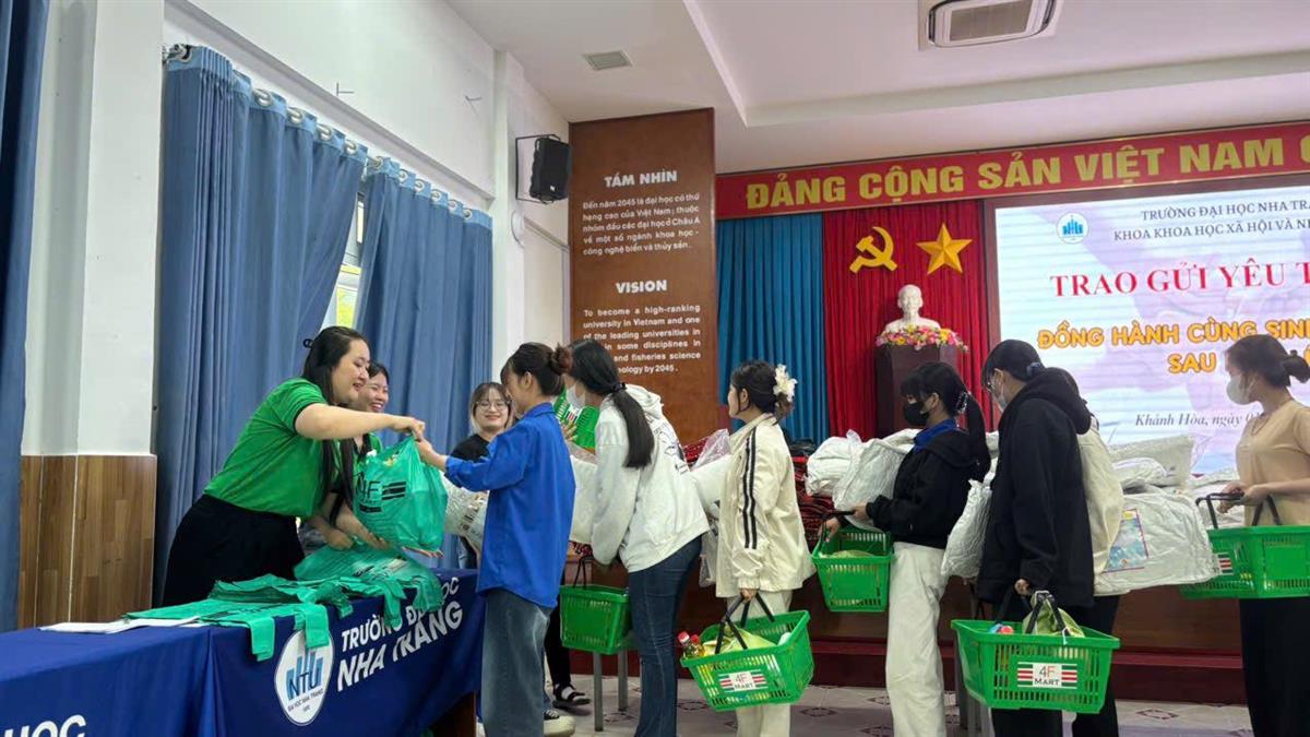 Ngày 01/12/2025, tại Trường Đại học Nha Trang, Khoa Khoa học Xã hội & Nhân văn phối hợp cùng Hệ thống 4F Mart đã tổ chức chương trình trao quà hỗ trợ cho sinh viên có gia đình bị ảnh hưởng bởi trận lũ vừa qua. Hoạt động nhằm góp phần chia sẻ khó khăn, động viên các bạn sinh viên vượt qua giai đoạn thử thách, yên tâm học tập.